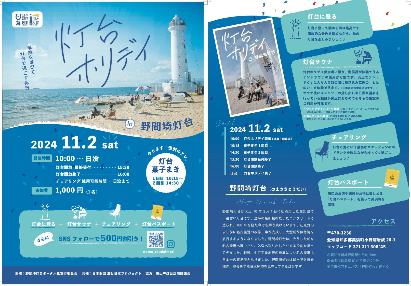 愛知県美浜町で町づくりや「野間埼灯台登れる化プロジェクト」を行う野間埼灯台ポータル化実行委員会(以下:当会)は、2024年11月2日(土)、...