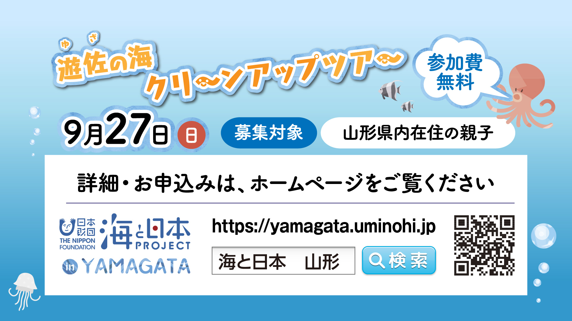 海洋ごみバスターズin山形では、親子で海岸を歩きクリーンアップを行いながら海洋ごみの現状について知ると共に、湧水の美しい釜磯海岸で海と山のつ...