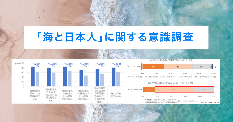 「約半数の人がこの1年間、海に行っていない」と判明。その結果、「海が好き・親しみを感じる」と回答した人も減少し、課題が浮き彫りに。